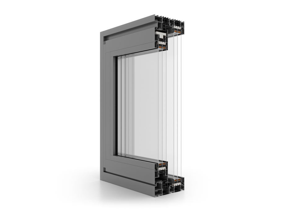 Uw = 0,90 W/(m²K)* mit 6esg/18sws/6esg/18sws/6esg-Paket – Ug = 0,5 W/(m²K), mit Argon gefüllt, mit Abstandhalter aus Aluminium.